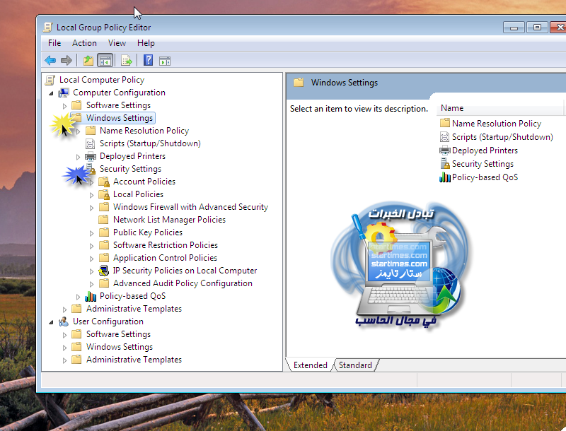 2-تم التوجه إلى المسار الاتي Local Computer Policy –> Computer Configuration –