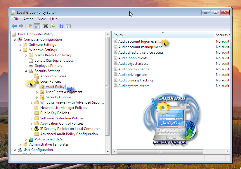 الآن حاسوبك جاهز لتسجيل جميع عمليات تسجيل الدخول سواء كانت ناجحة ام فاشلة ، (المقصود بناجحة ان الشخص لم يجد اي مشاكل في تشغيل الويندوز مثلا إذا كان الحاسوب يطلب باسورد وقام بإدخاله صحيحا فهذا يعني ان عملية تسجيل الدخول هي عملية ناجحة . اما المقصود بفاشلة