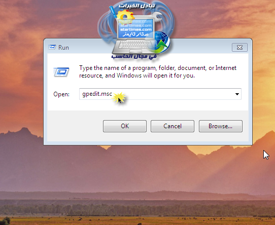 1- نذهب الى run ثم نكتب مايلي : gpedit.msc